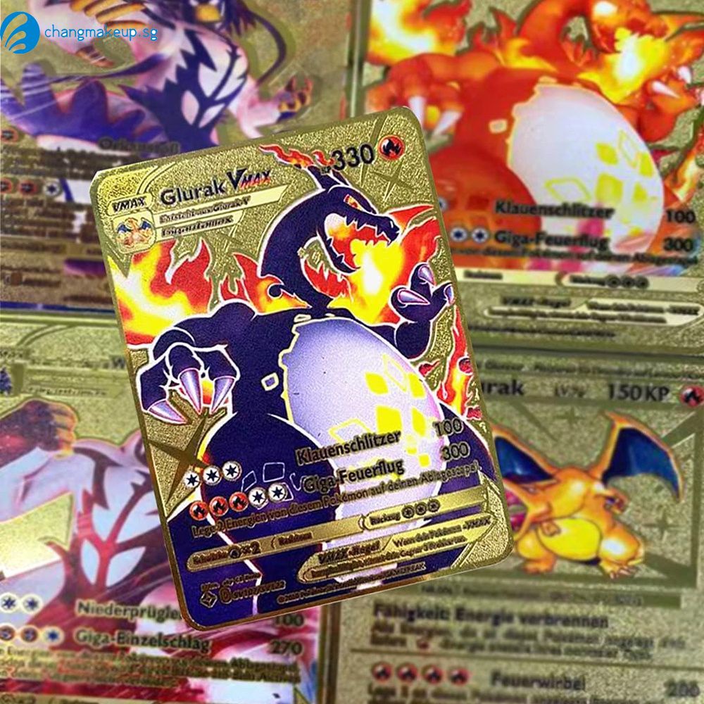 3pcs 1pcs Ultra Rare Pokemon Metal Gold Plated Card Charizard Gold Custom Metal Card Vmax Dx Gx Metal Gold Plated Collection Cards Shopee Singapore